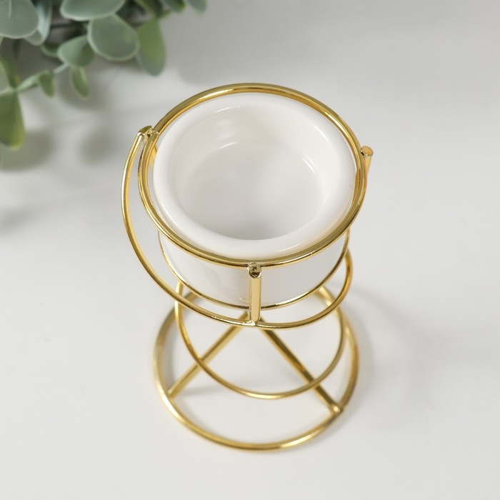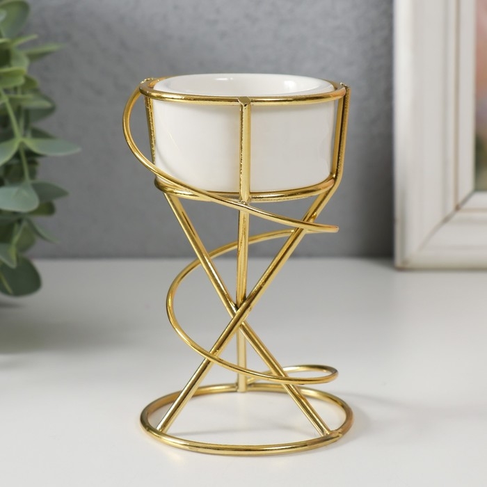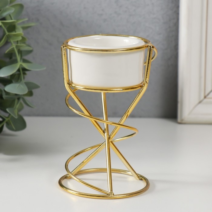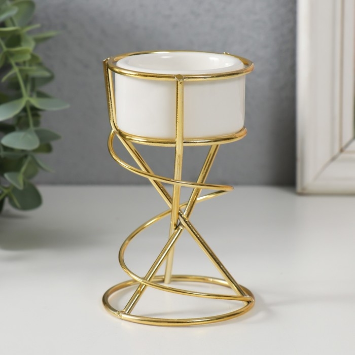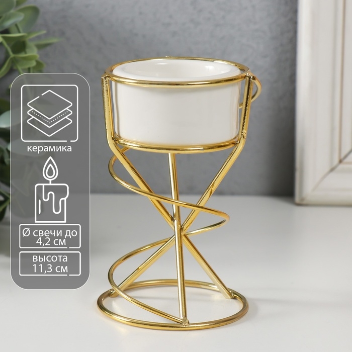 Подсвечник керамика, металл на 1 свечу "Спираль" белый с золотом 6,8х6,7х11,3 см
