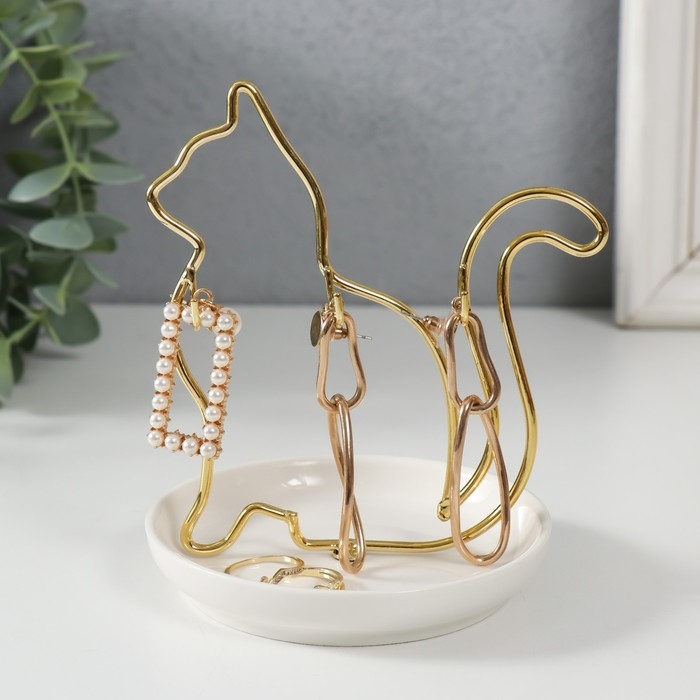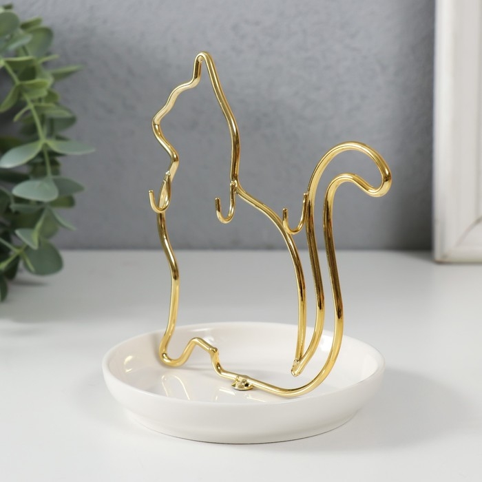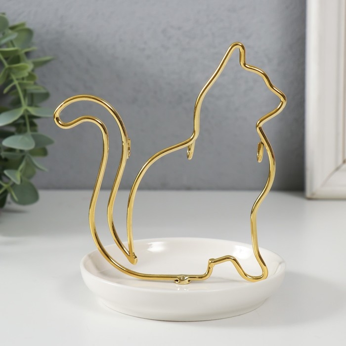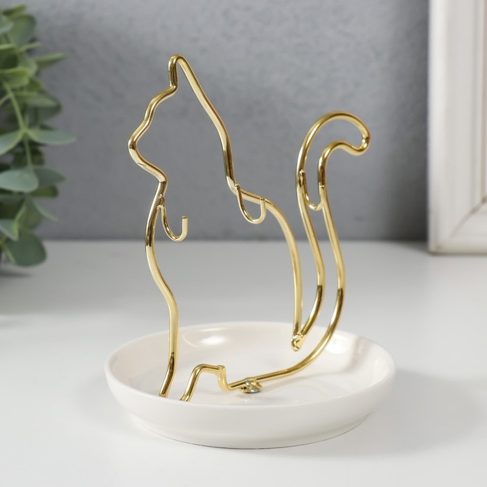 Сувенир керамика, металл подставка "Кошка" белая с золотом 10,5х10х12,5 см