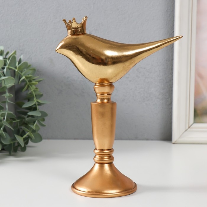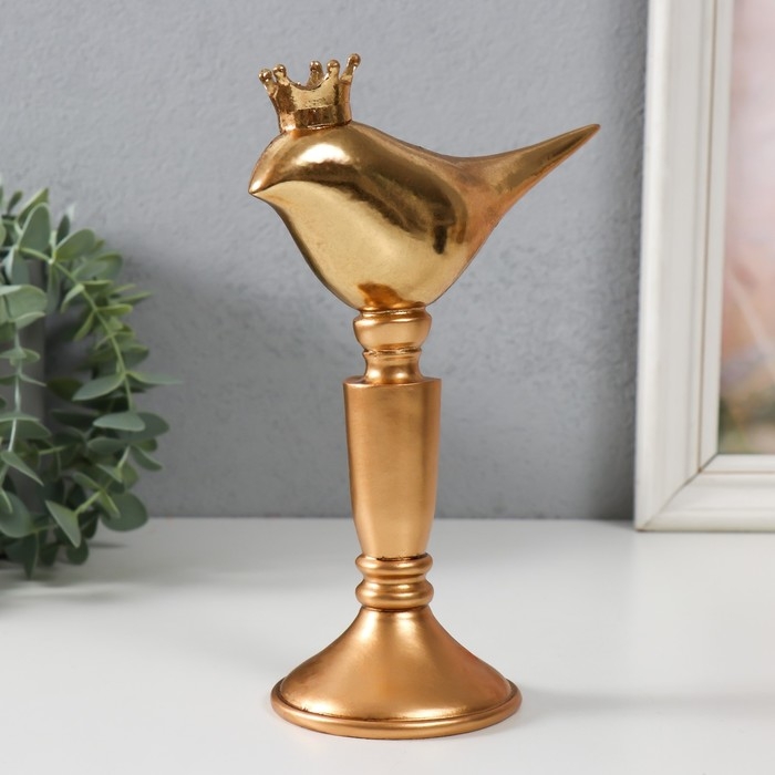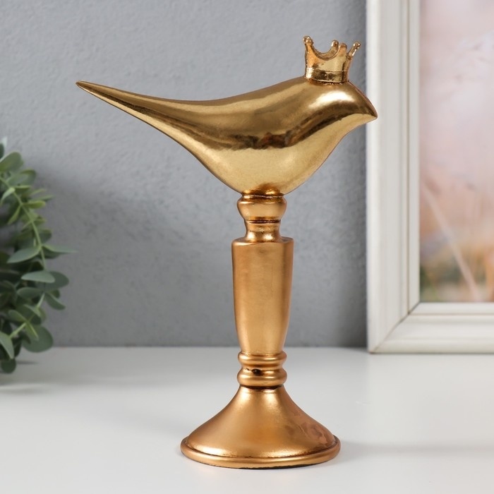 Сувенир полистоун "Птица в короне на подставке" золото 14,3х8х20 см