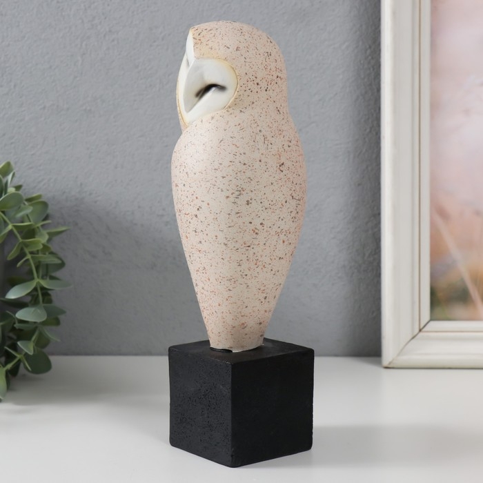 Сувенир полистоун "Сова - Обыкновення сипуха на пеньке" песочный 8,5х7х19 см