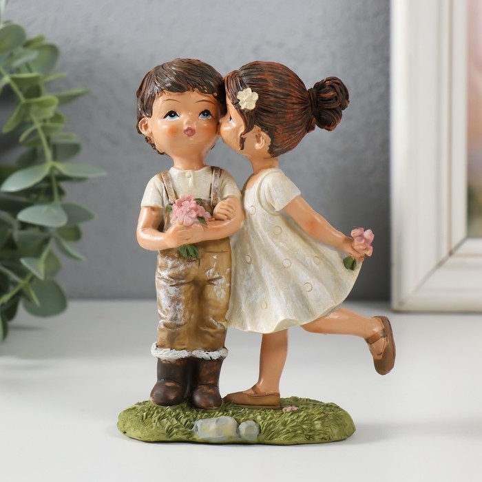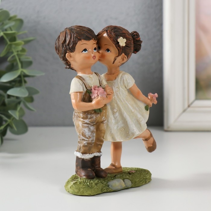 Сувенир полистоун "Малыши на прогулке - первый поцелуй" 9,5х4,5х12,5 см