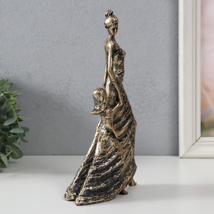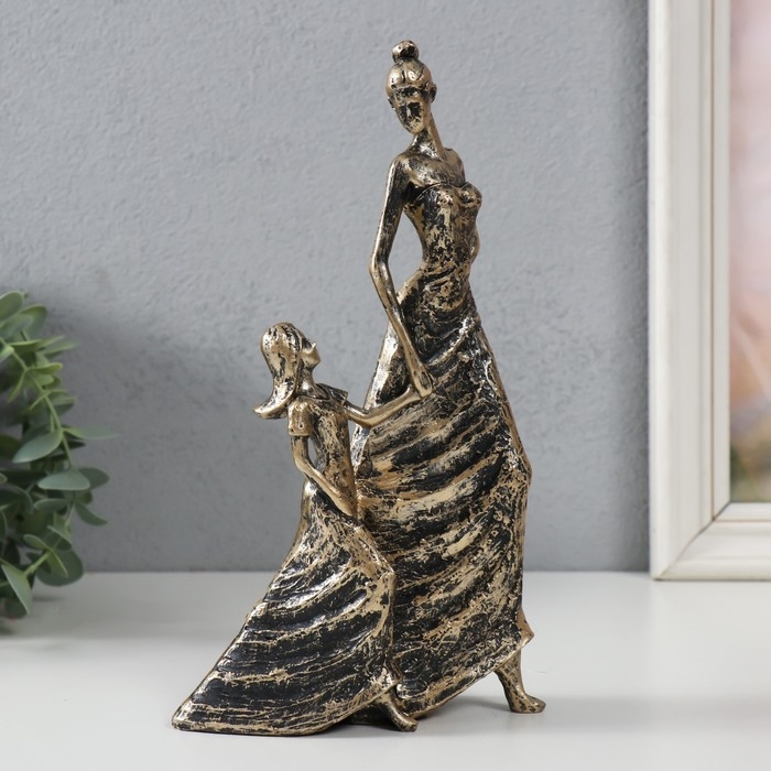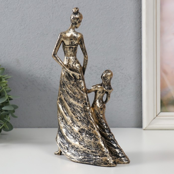 Сувенир полистоун "Мама и дочка" под бронзу