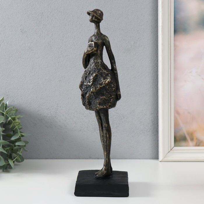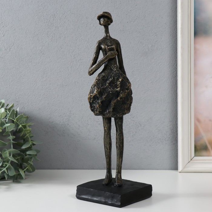 Сувенир полистоун "Девушка в шляпке" под металл 9,4х9х31,7 см