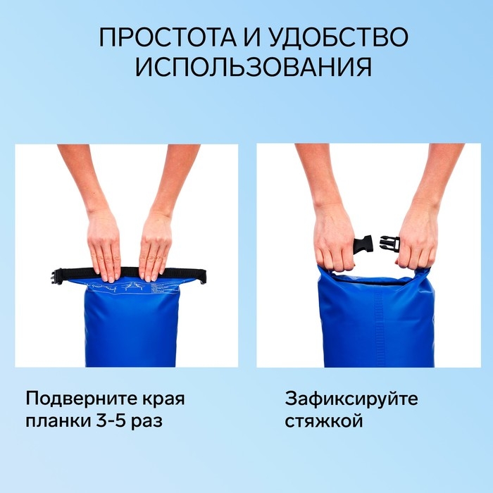 - Удобство использования. Гермомешки оснащены двумя регулируемыми ремнями, что позволяет носить их как сумку или как рюкзак.