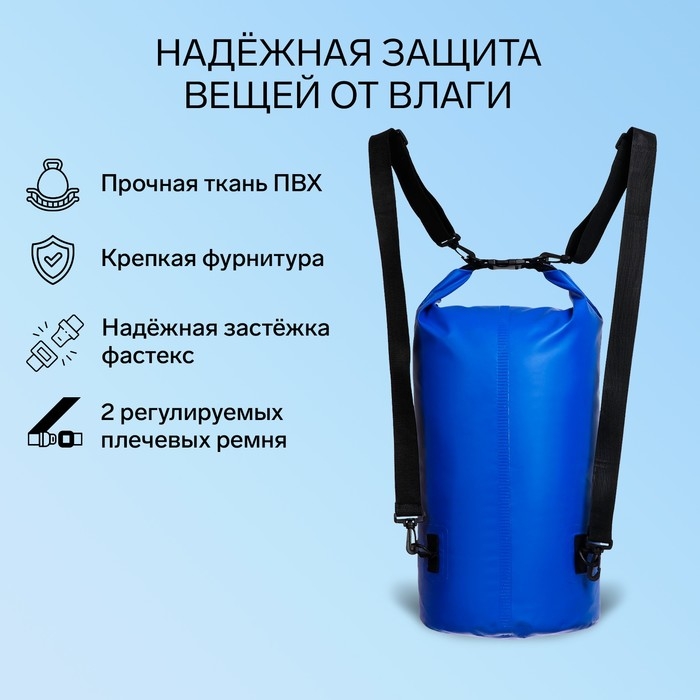Гермомешок YUGANA, ПВХ, водонепроницаемый 30 литров, два ремня, синий