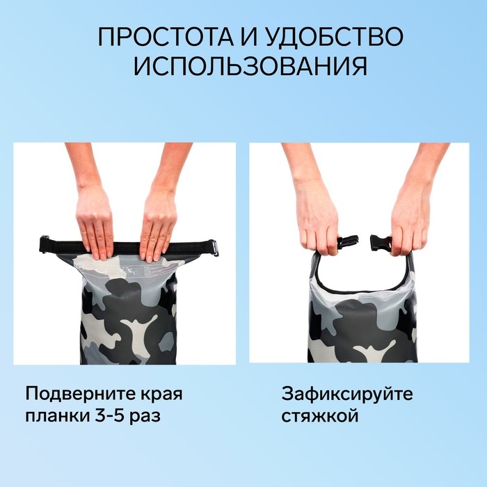 Гермомешок YUGANA, ПВХ, водонепроницаемый 20 литров, один ремень, камуфляж-цифра