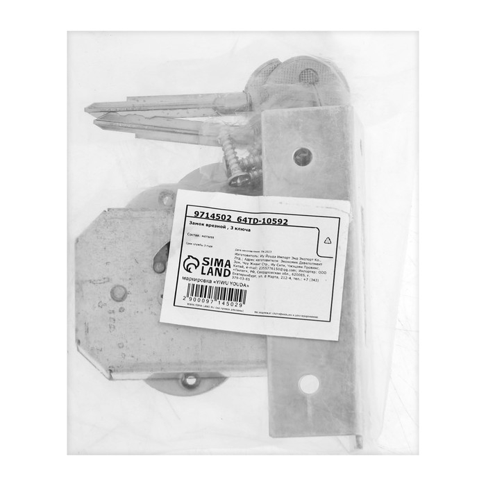 Замок врезной VZ001, 3 ключа