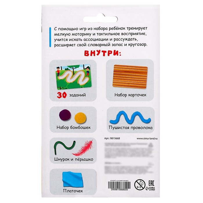Развивающий набор «Интерактивные карточки» поможет малышам от 3 лет потренировать мелкую моторику и тактильное восприятие, научиться искать ассоциации и рассуждать, расширить свой словарный запас и кругозор.