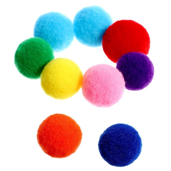 - Положите перед малышом несколько элементов из набора: 2–3 бомбошки, пёрышко, шнурок.