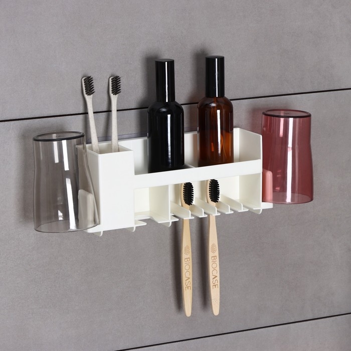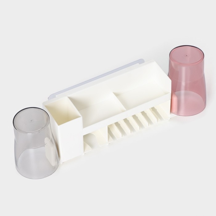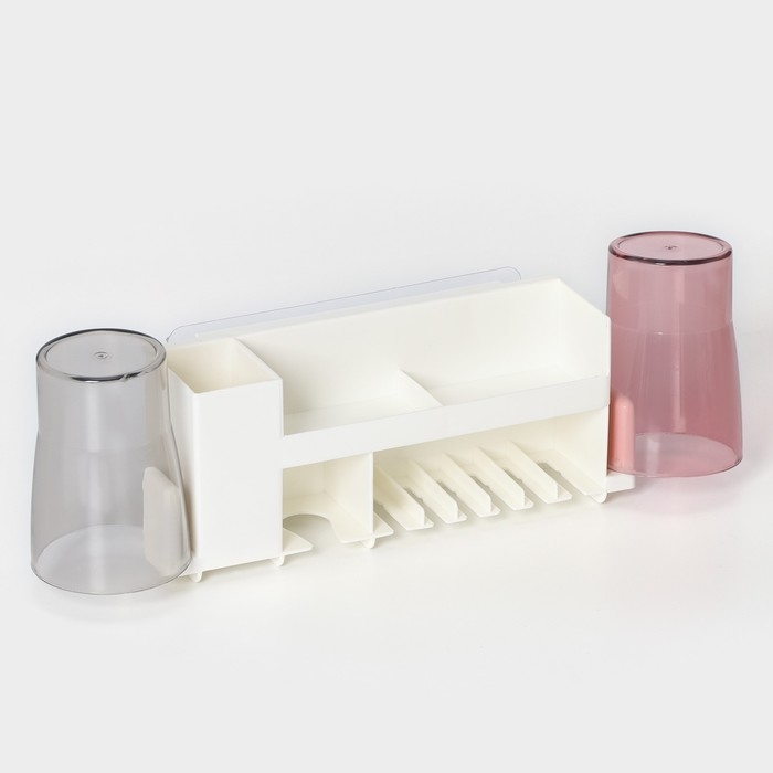 Держатель для зубных щёток с 2 стаканами, на липучках, цвет белый