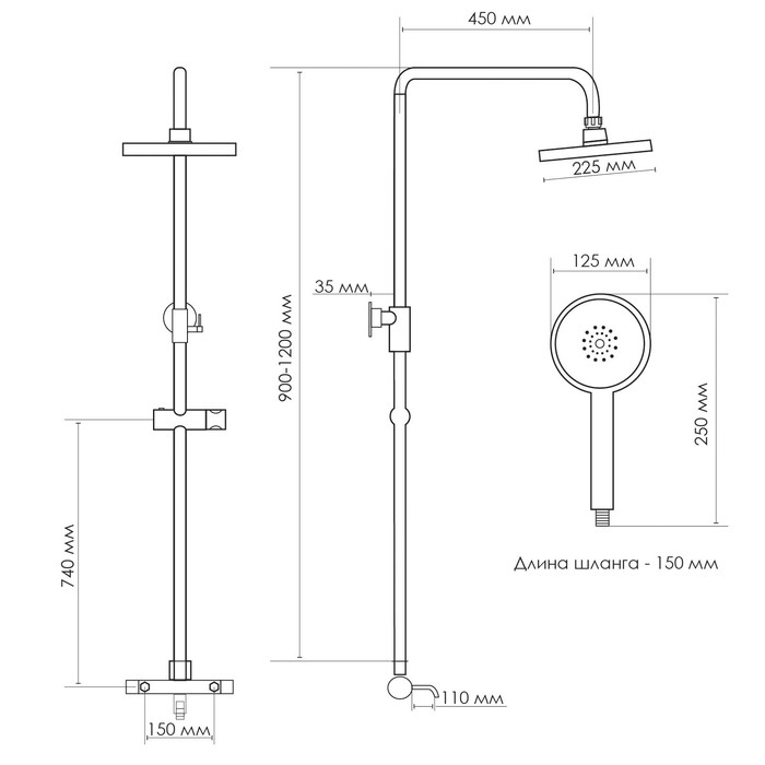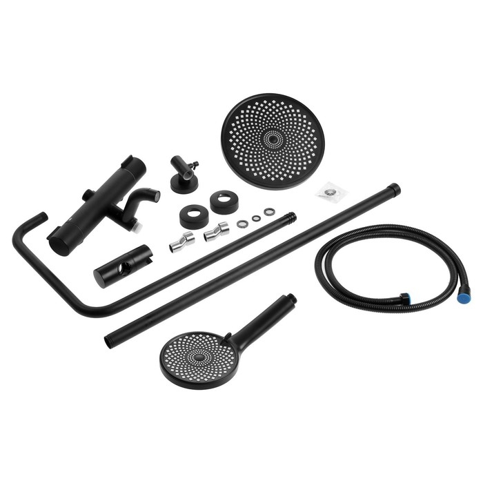 Душевая система ZEIN Z3895, с термостатом, лейка верхняя d=23 см, ручная 12,5 см, чёрная