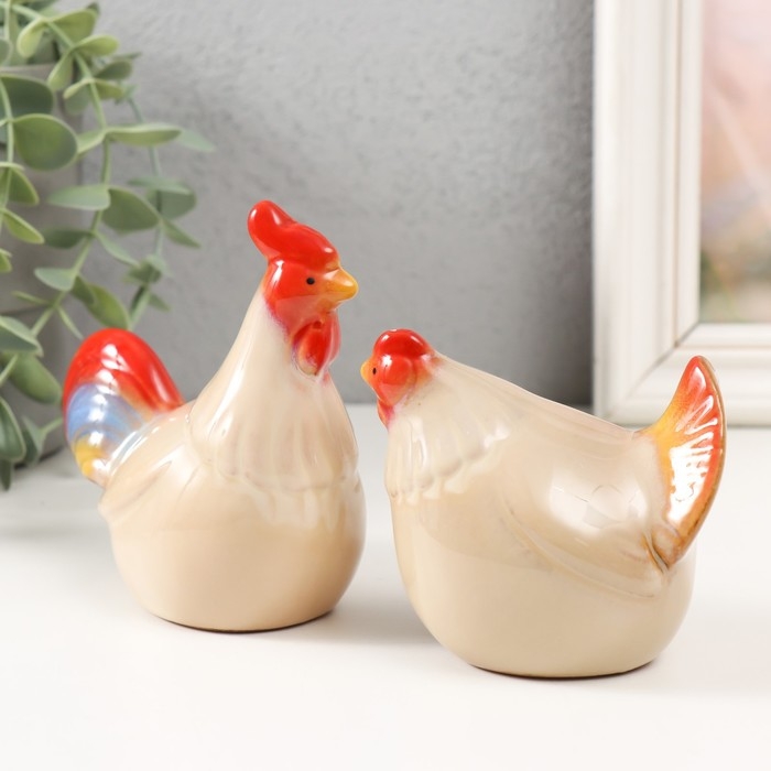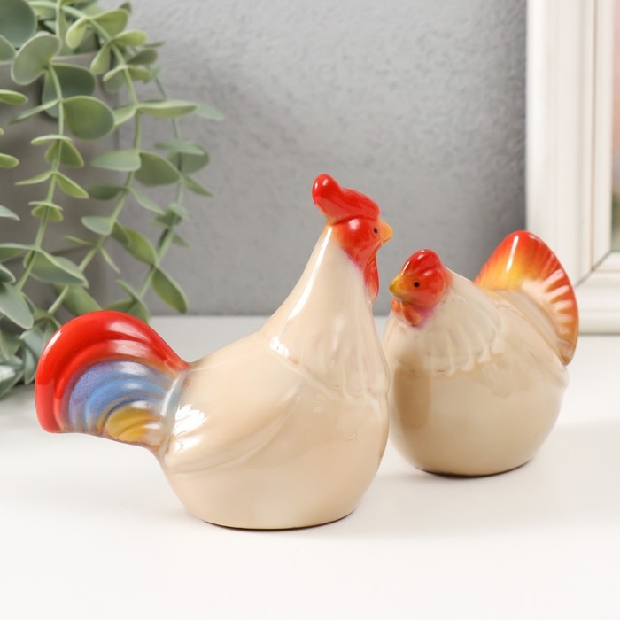 Сувенир керамика "Петух и курица" набор 2 шт 5,3х8,2х7 5,3х10,5х10 см