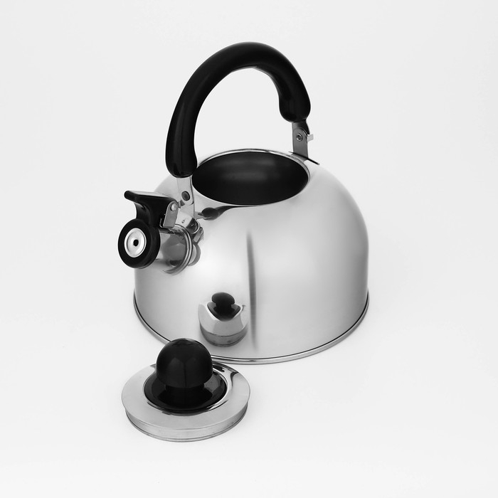 Чайник со свистком из нержавеющей стали Доляна «Чёрная ночь», 2 л, индукция, цвет хромированный