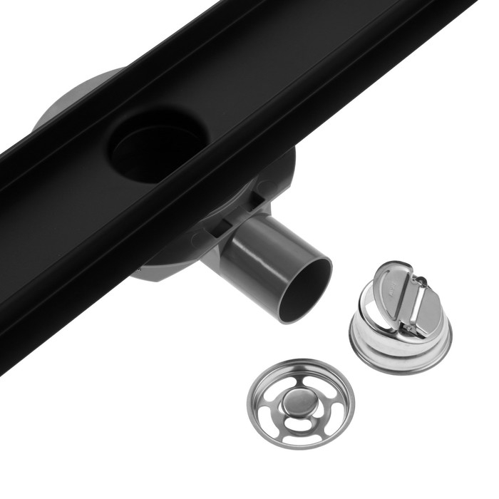 Трап ZEIN, c флaнцeм свободного вращения 360°, 7х70 см, d=40/50 мм, нерж. сталь, черный