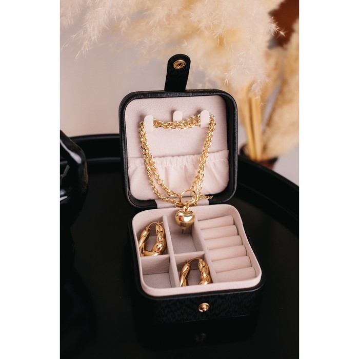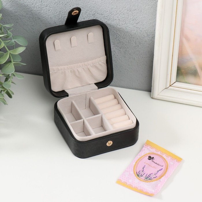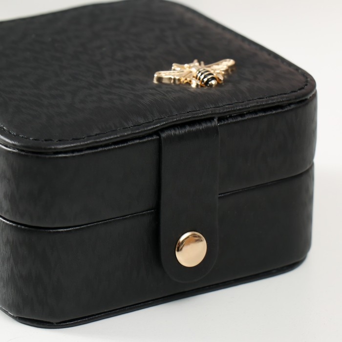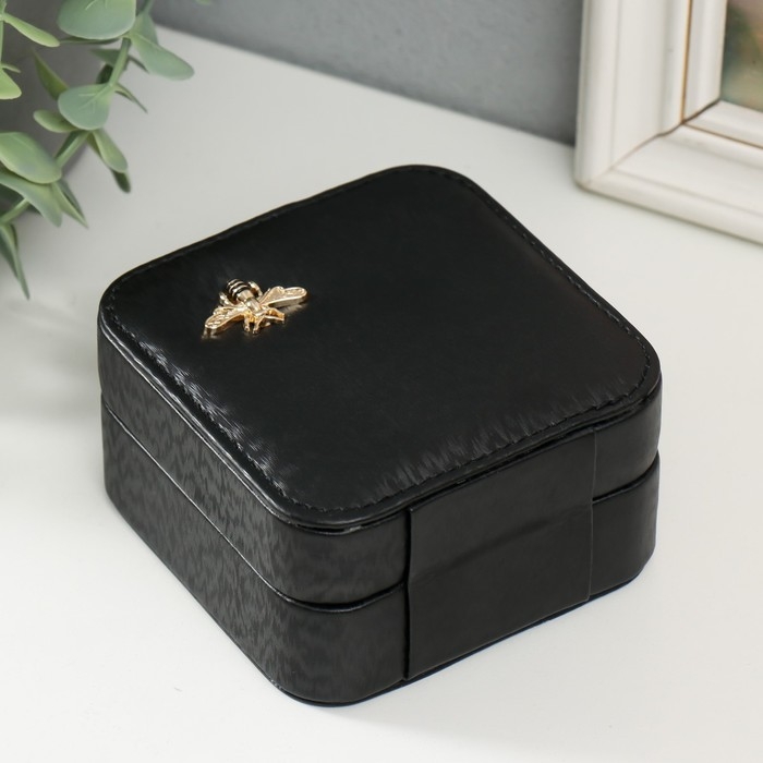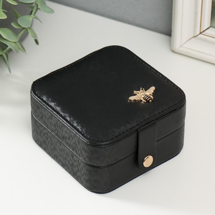 Шкатулка текстиль для украшений "Перелив с украшением" чёрная 10х10х6 см