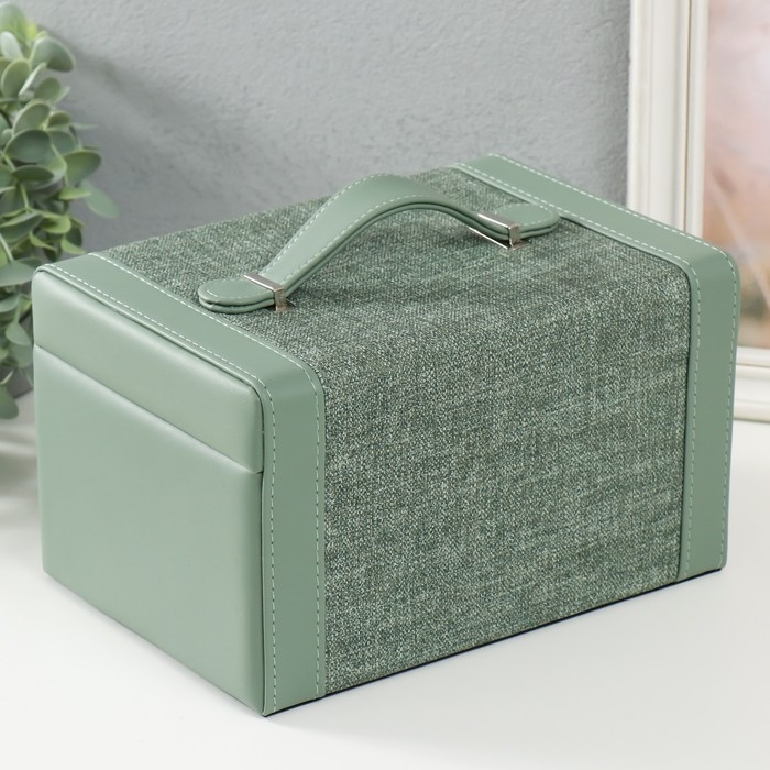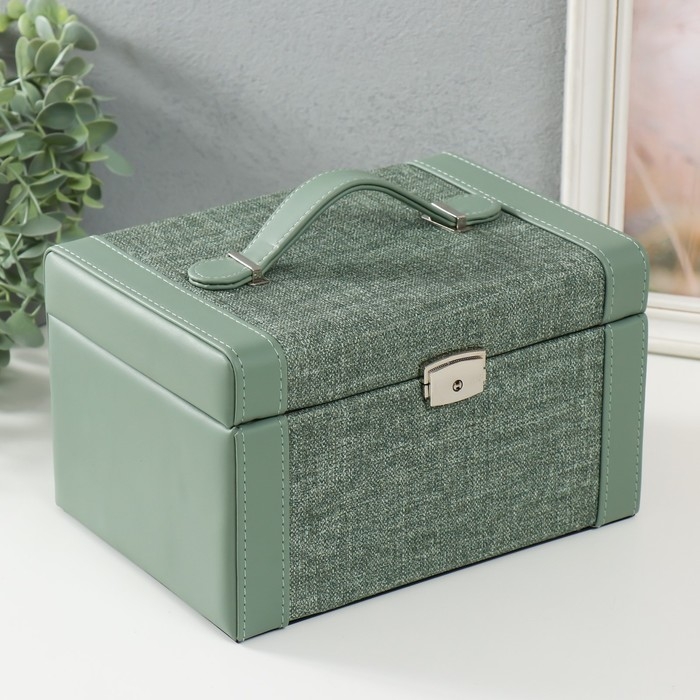 Шкатулка кожзам для украшений сундук "Зелёная" комбинированная 23,5х16,5х14,5 см
