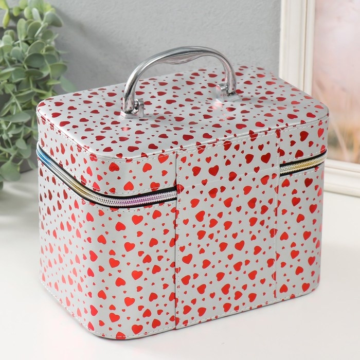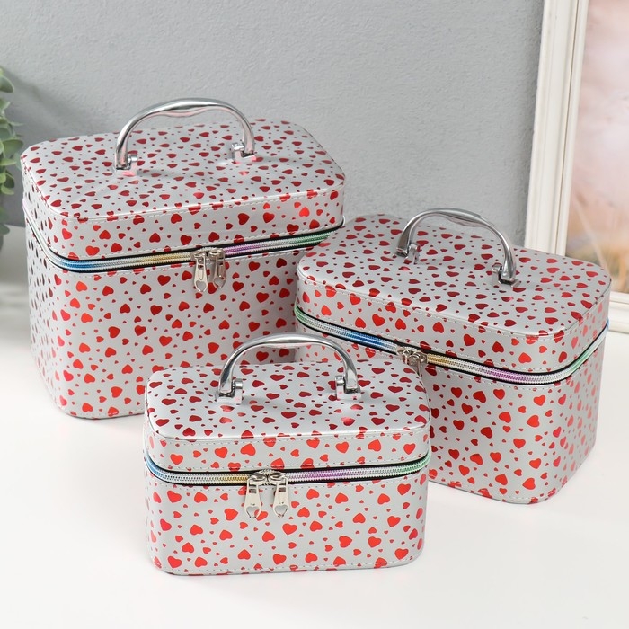 Шкатулка кожзам с зеркалом "Сердца на белом" н-р 3 шт 13х21х14,5 10х19х12 21х15,5х17 см