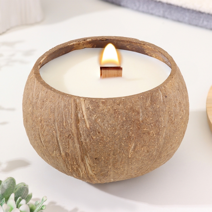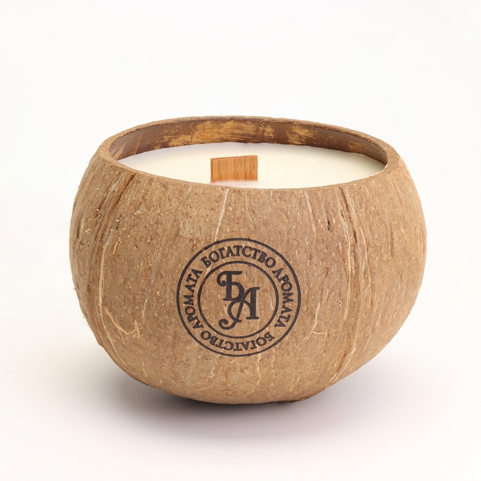Свеча в кокосе ароматическая, сандал, соевый воск, 8х10 см, в коробке