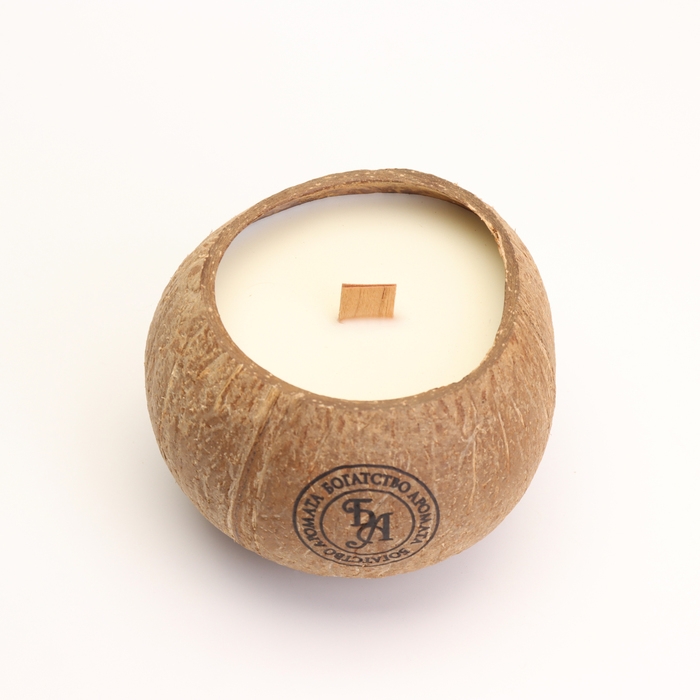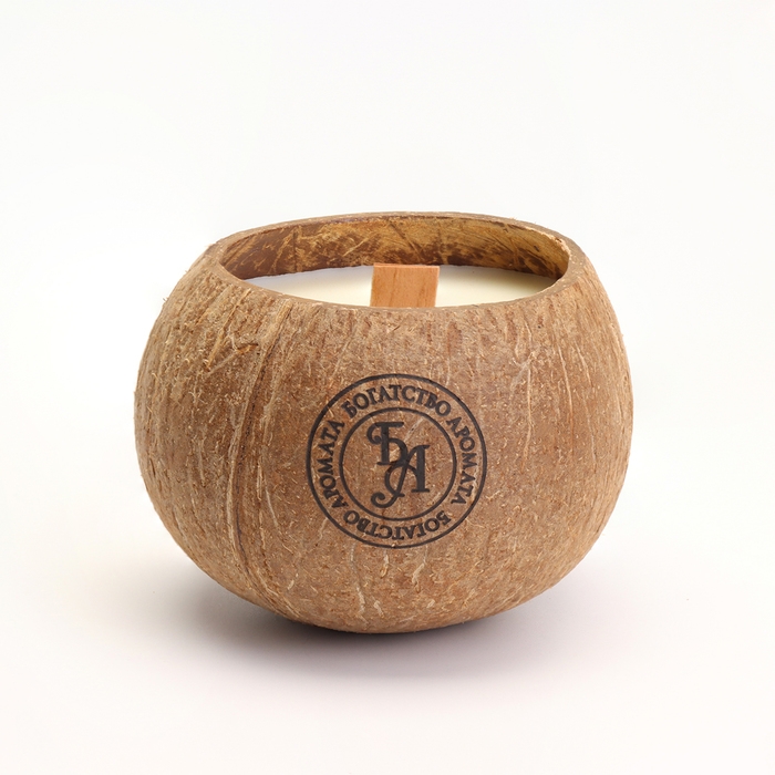 Свеча в кокосе ароматическая, зелёный чай, соевый воск, 8х10 см, в коробке