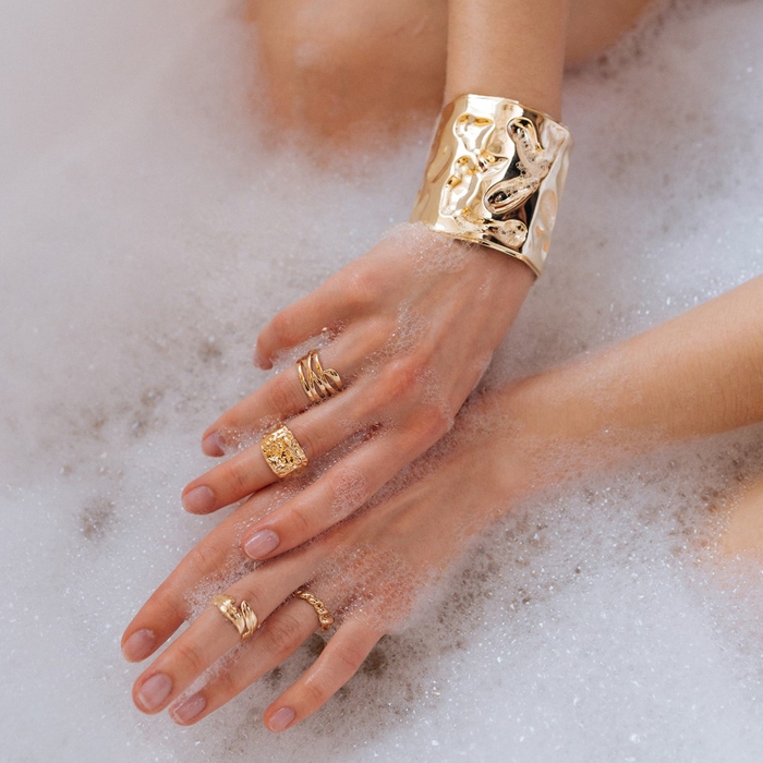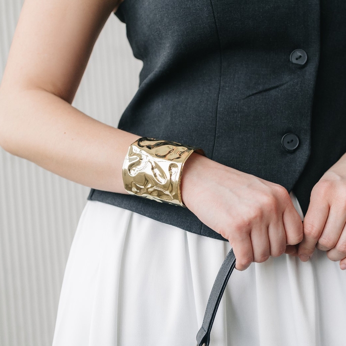 Браслет металл «Манжета» с выемками, цвет золото