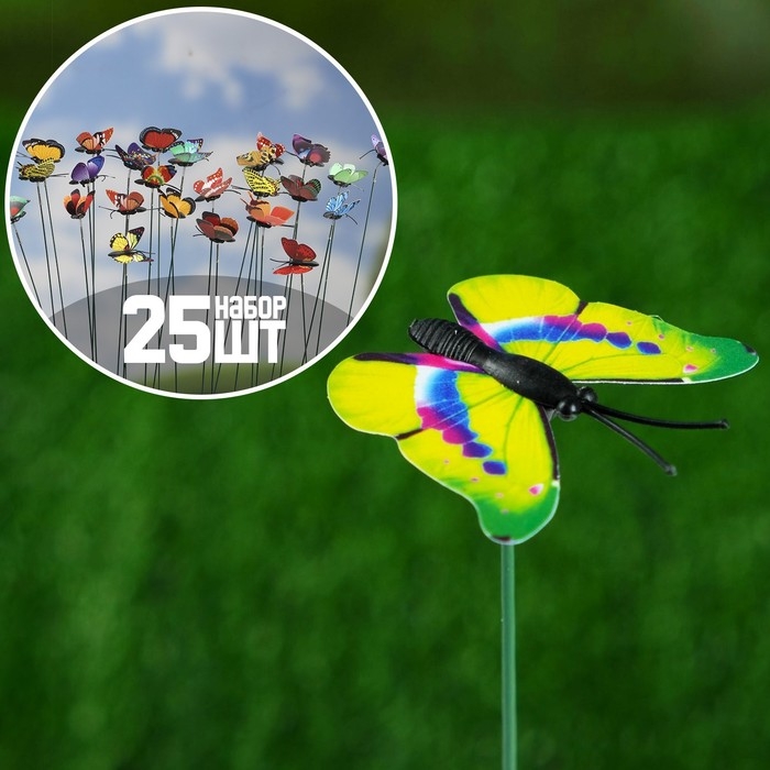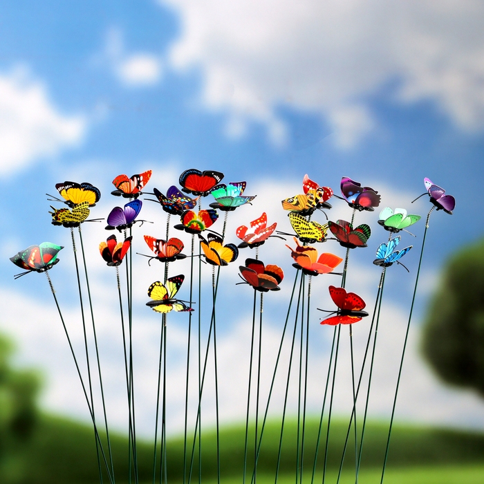 Штекер "Бабочка Шарлин" 3х4см/30см, набор 25шт, МИКС