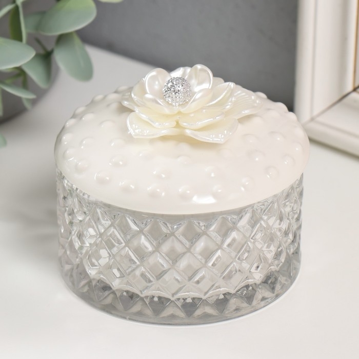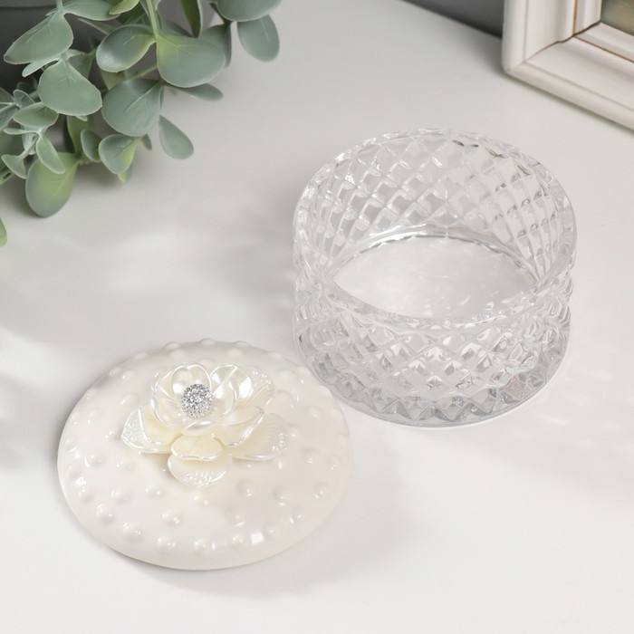 Шкатулка стекло, керамика "Жемчужный пион" 7х8,5х8,5 см