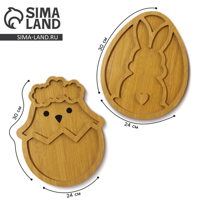 Менажница, набор 2 шт., дерево «Посуда: пасхальные животные», заяц 30х24 см., цыпленок 30х24 см.