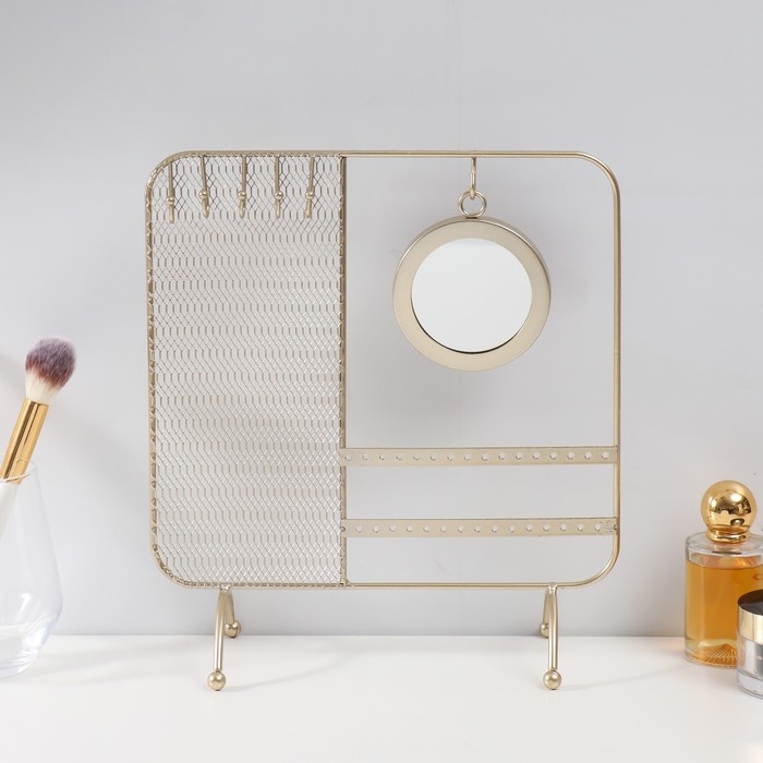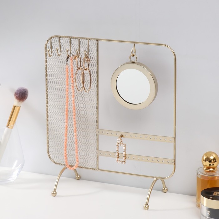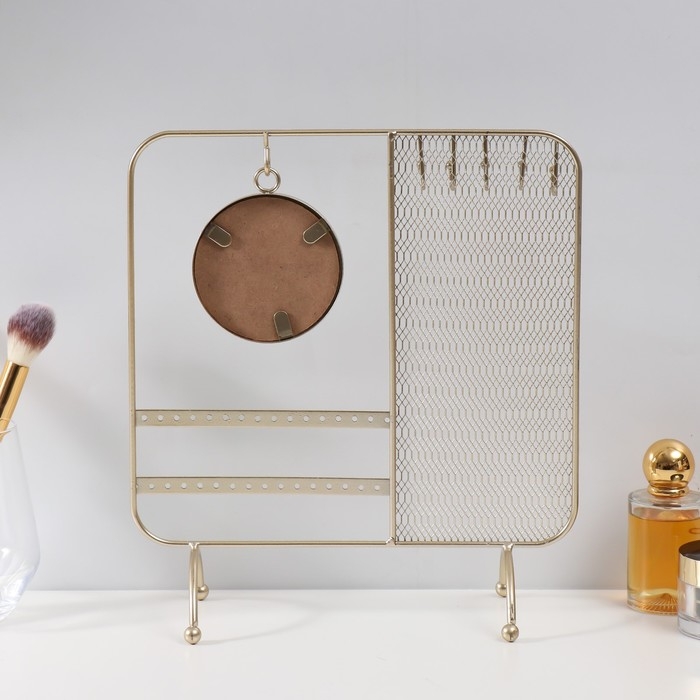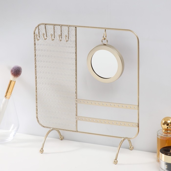 Если вы занимаетесь реализацией разнообразных украшений и аксессуаров, то вам нужно наглядно продемонстрировать свой товар, представив его в лучшем виде. Сувенир металл с зеркалом подставка для украшений "Сети" золото 25,3х10х28,7 см как нельзя лучше справится с этой задачей! У каждого украшения появится своё место, откуда его можно будет хорошо рассмотреть.