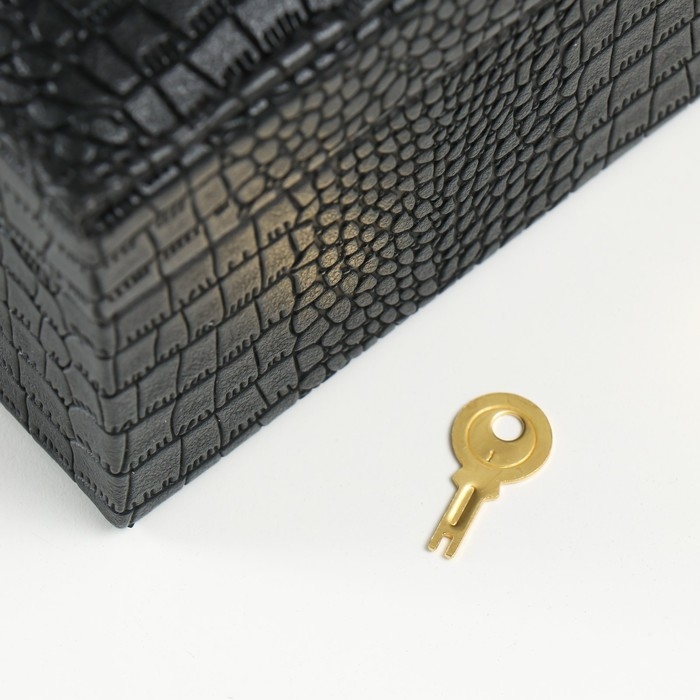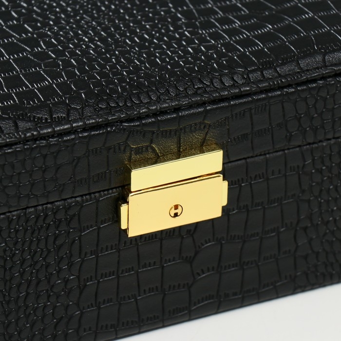 Шкатулка кожзам под часы 2 отделения и бижутерию "Кожа крокодила" чёрная 26х26,5х10 см