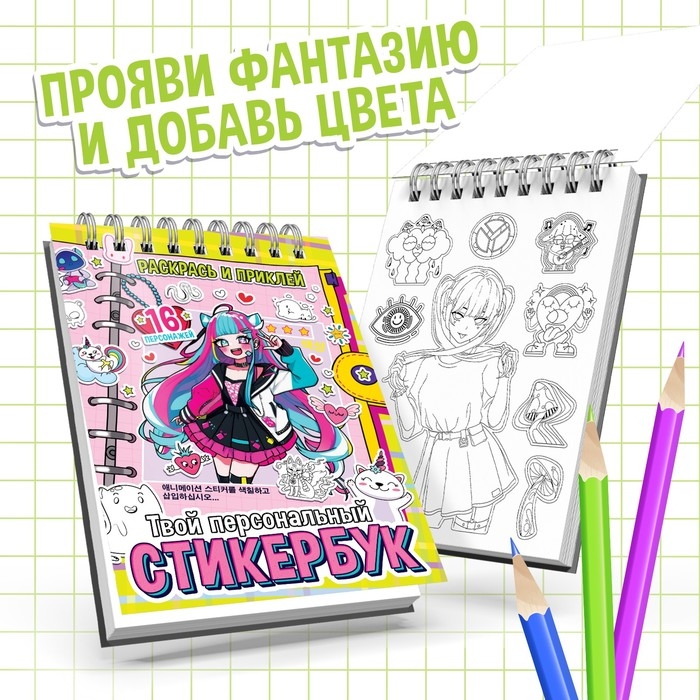 Раскраска-наклейки «Твой персональный стикербук», Аниме