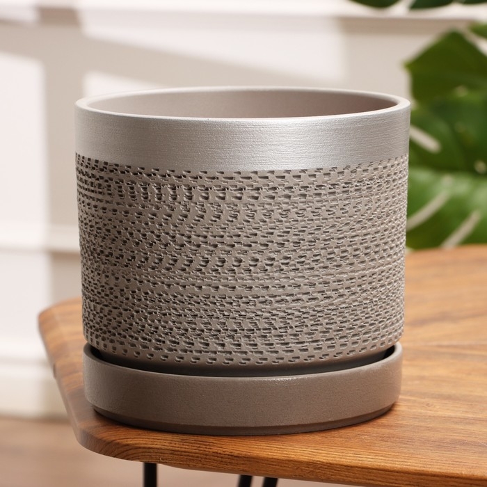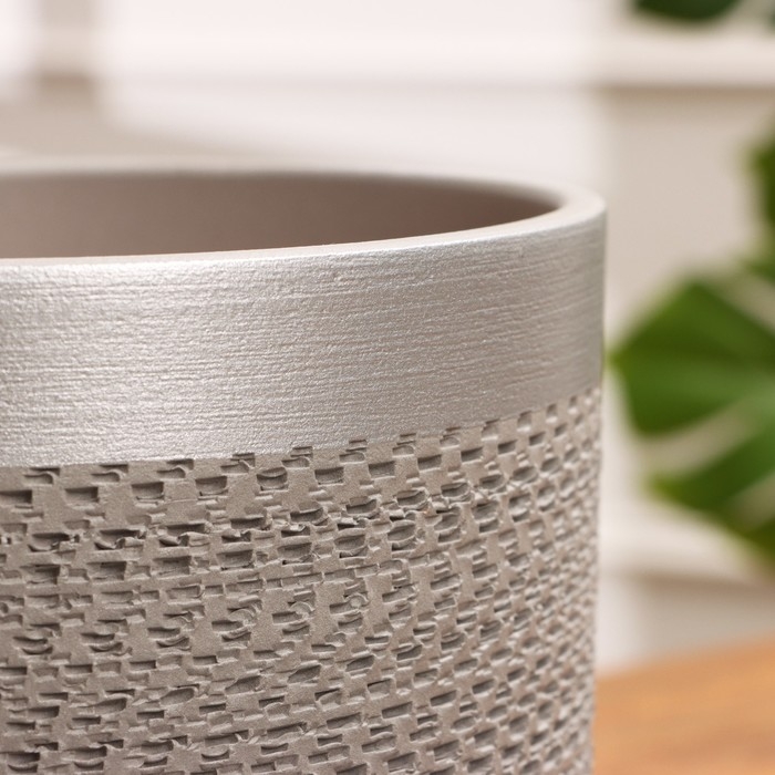 Горшок цветочный "Брюссель" серый серебро цилиндр №4, 4,2 л