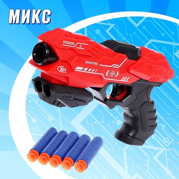 Бластер «Power gun», стреляет мягкими пулями, цвет МИКС