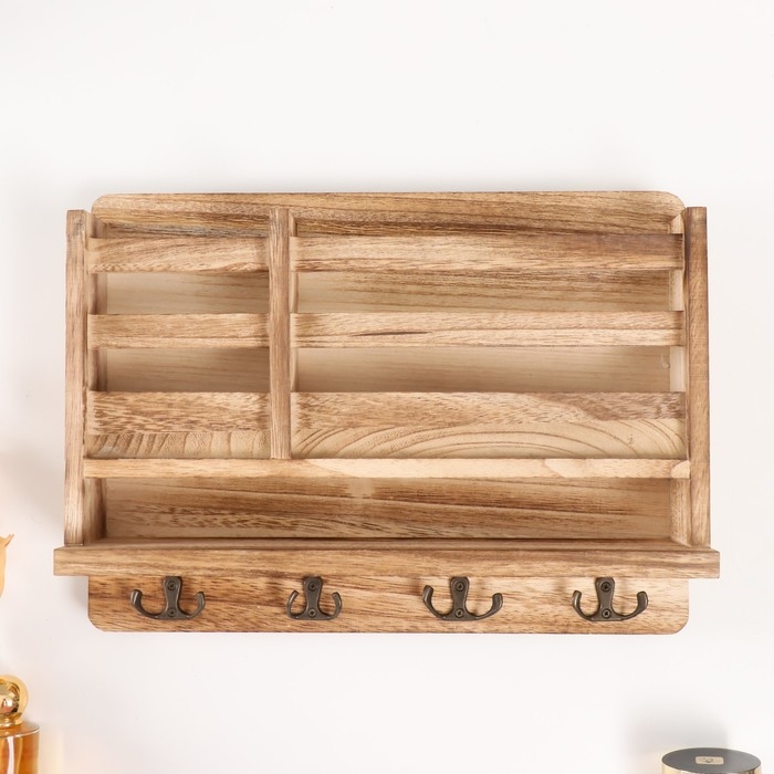 Крючки декоративные дерево с карманом и полочкой под роспись "Натуральный" 10,5х28х18 см