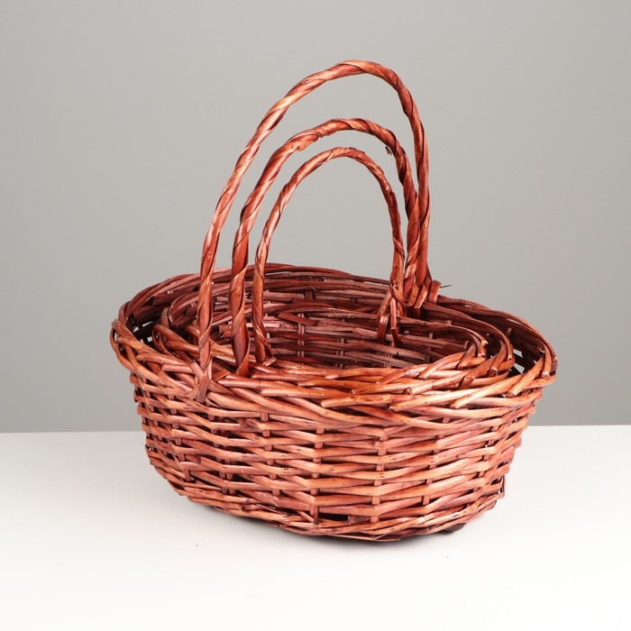 Набор корзин плетеных, 38x30xH14/35см, 33х25xH12.5/30см, 28х20x11/H25 см, 3 шт, ива