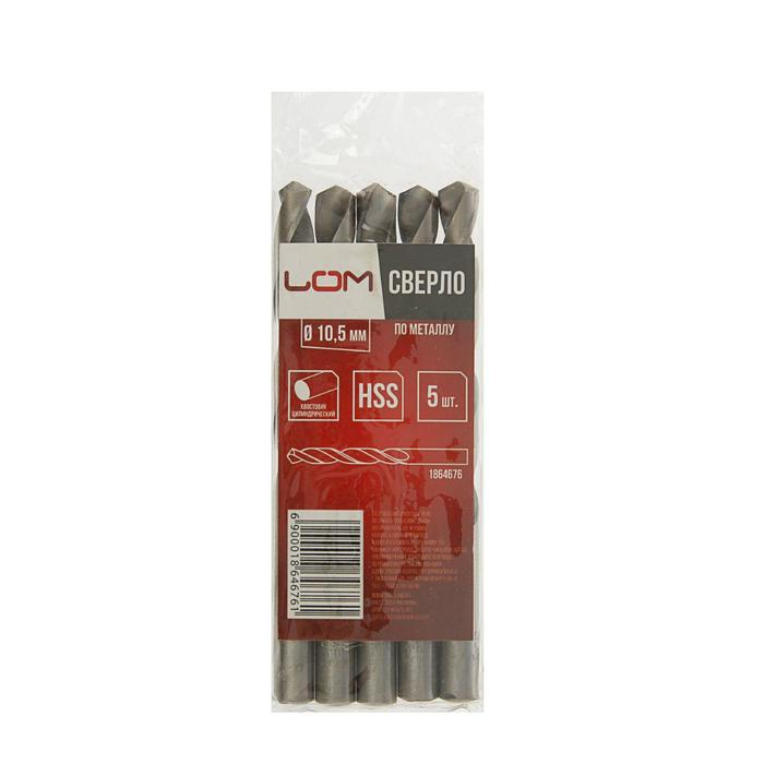 Сверло по металлу ЛОМ, HSS, цилиндрический хвостовик, 10.5 х 135 мм, 5 шт.