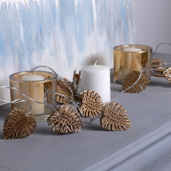 Гирлянда «Нить» 2.5 м с насадками «Листочек», IP20, прозрачная нить, 10 LED, батарейки AAх2 (нет в комплекте), свечение тёплое белое