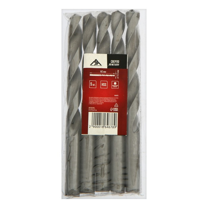 Сверло по металлу ЛОМ, HSS, цилиндрический хвостовик, 11.5 мм, 5 шт.