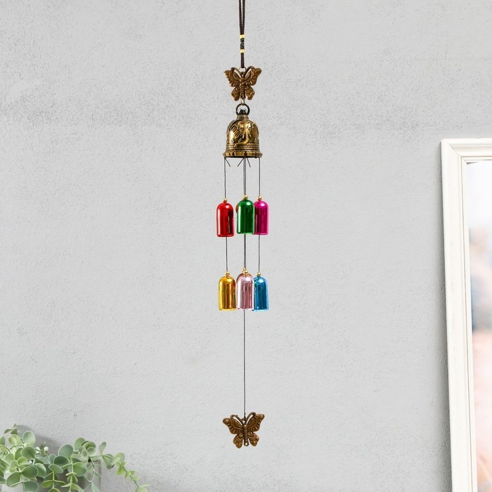 Музыка ветра металл "Бабочки и 6 цветных колокольчиков" 55х4,7х4,2 см