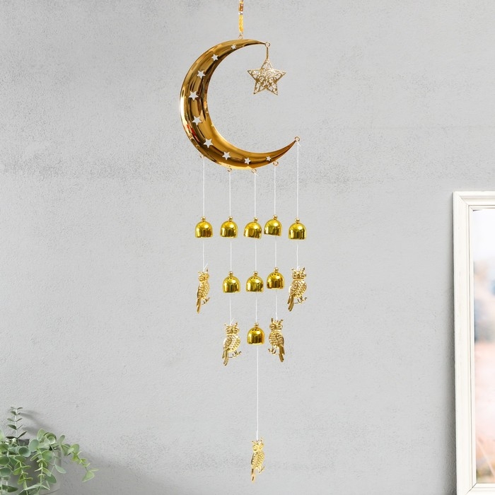 Музыка ветра металл "Полумесяц и филины" 9 колокольчиков 80х17,5х2,5 см
