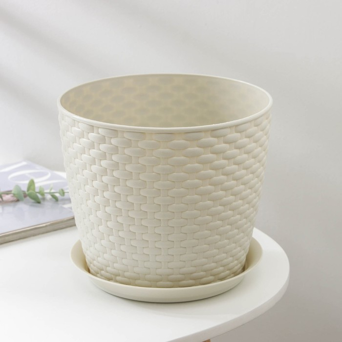 Горшок с поддоном «Ротанг», 4,7 л, цвет белый