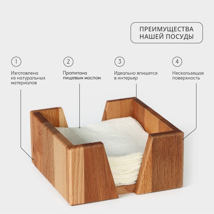 Салфетница деревянная Adelica, 14×14×7 см, бук