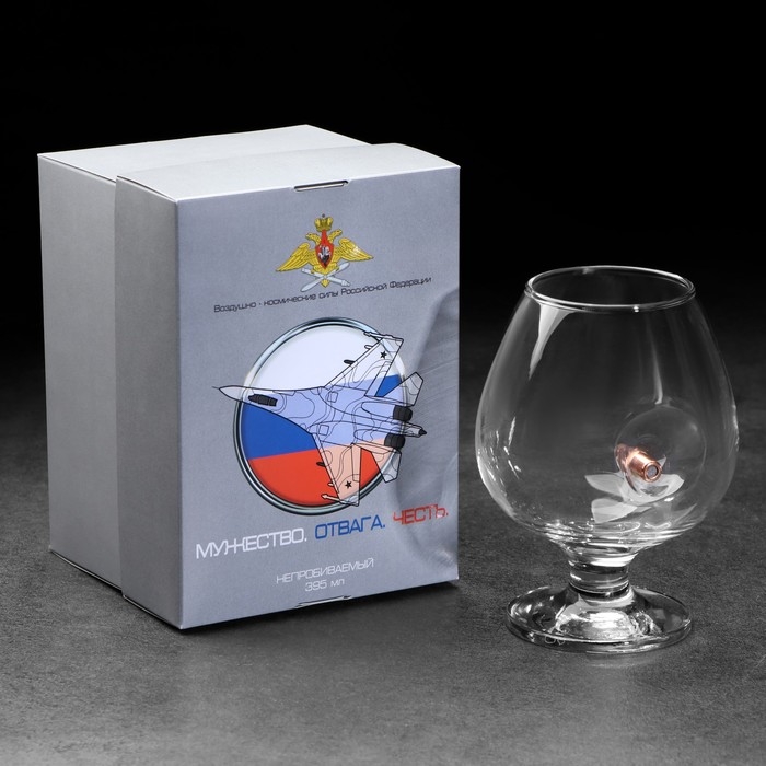 Бокал "Непробиваемый. ВКС", для коньяка, эмблема с пулей, 390 мл