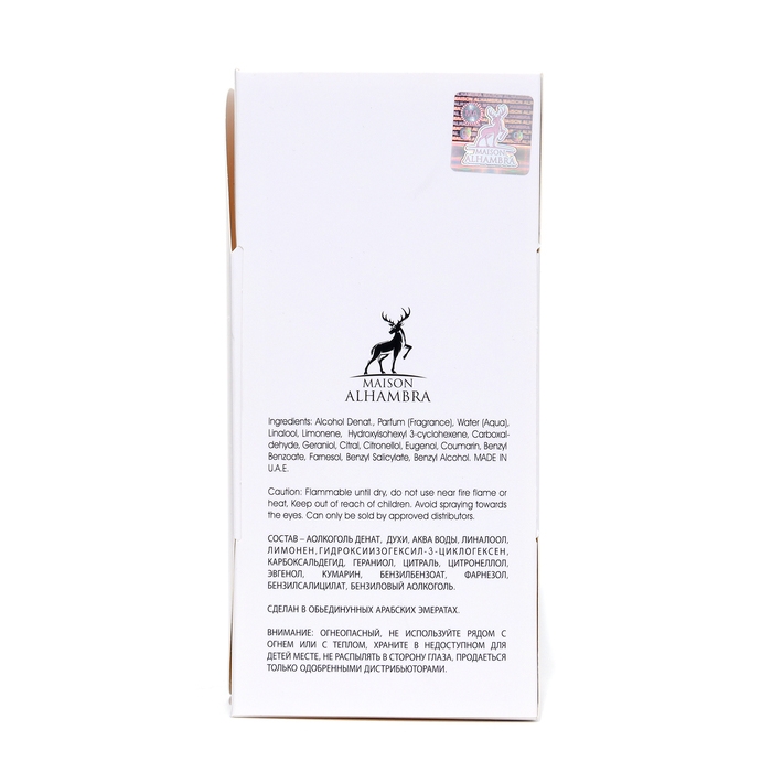 Состав спирт денатурированный 80%, вода, парфюмерная композиция, бензиловый спирт, коричневый спирт, цитраль, эвгенол, гидроксицитронеллаль, изогинол, амилциннамальный спирт, бензил, салицитат, циннамал, кумарин, гераниол, гидроксиизогексил 3-циклогексен карбоксальдегид, анисовый спирт, бензил, циннамат, фарнезол, бутилфенил метилпропианал, линалоол, бензилбензоат, цитронеллол, гексил циннамал, лимонен, метил 2-октиноат, альфа-изометил ионон, экстракт эверния прунастри, экстракт эверния фурфуацея.