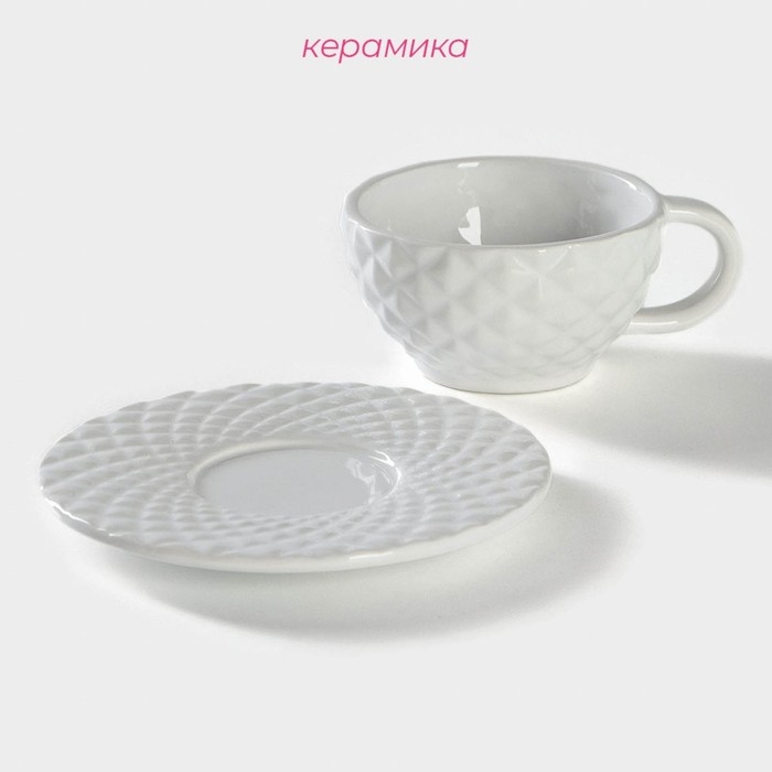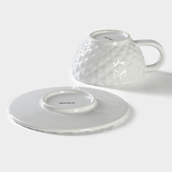Чайная пара Доляна «Ананас», 2 предмета: кружка 250 мл, блюдце d=15,5 см, цвет белый