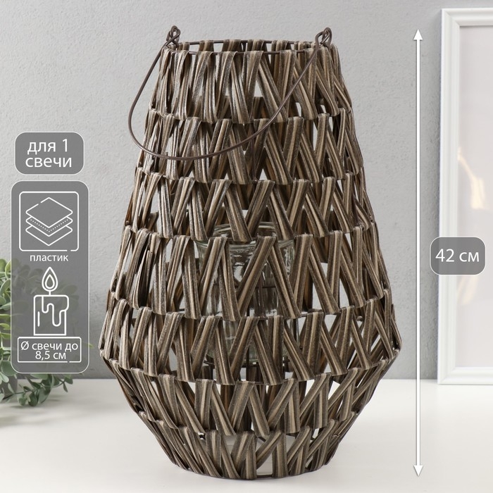 Подсвечник пластик на 1 свечу "Зигзаг" серый 16х29х42 см