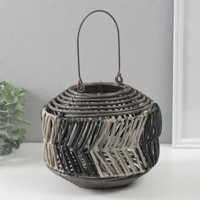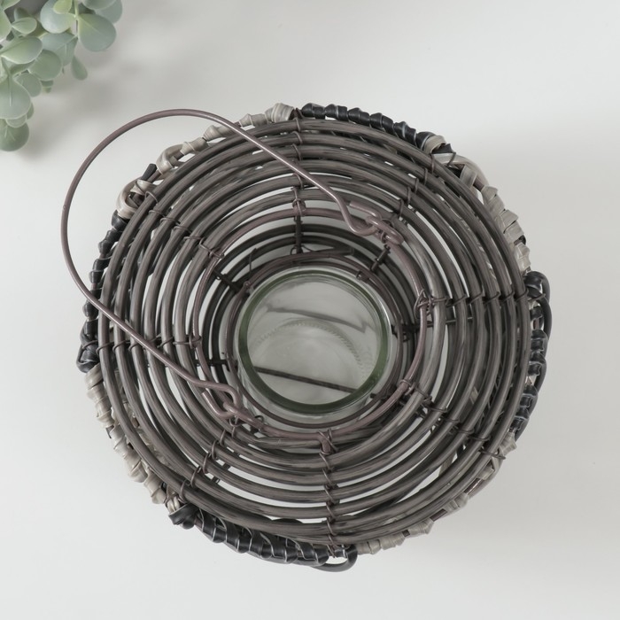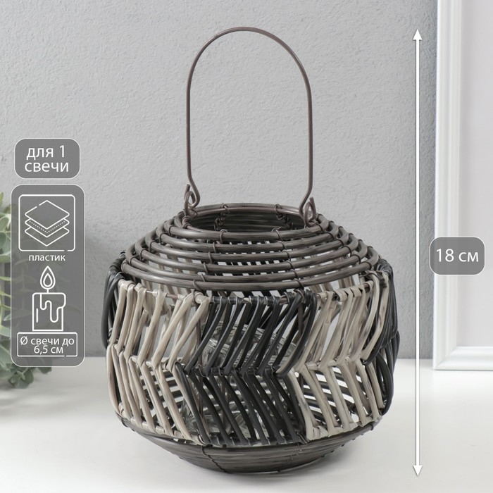 Подсвечник пластик на 1 свечу "Лист из лозы" чёрно-белый 11х22х18 см