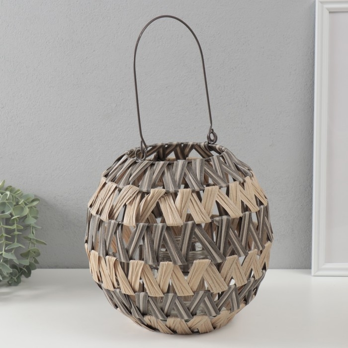 Подсвечник пластик на 1 свечу "Зигзаг полосками" серо-бежевый 13х27х25 см