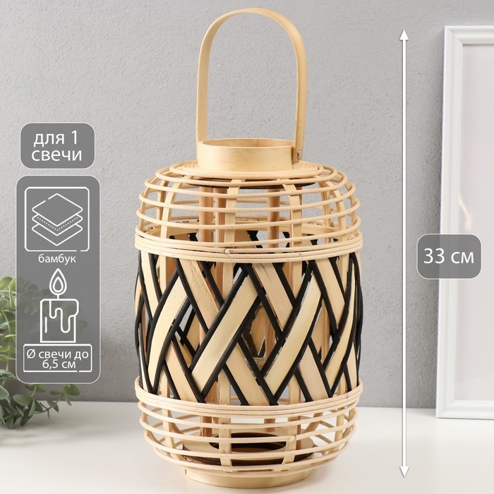 Подсвечник бамбук "Фонарик. Переплёт" 33х23х23 см