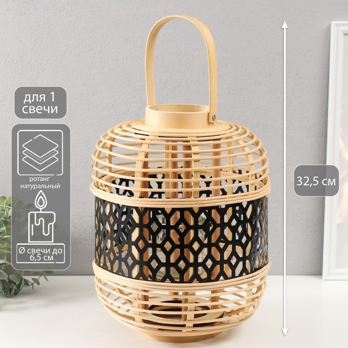 Подсвечник ротанг, металл "Фонарик. Соты" 32,5х25х25 см