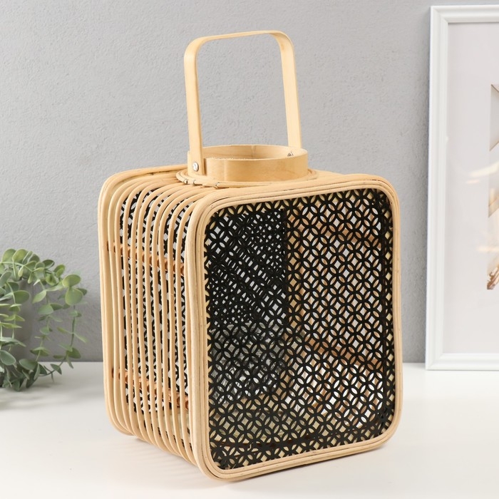 Подсвечник ротанг, металл "Фонарик. Сеточка. Прямоугольный" 31,5х24,5х19 см